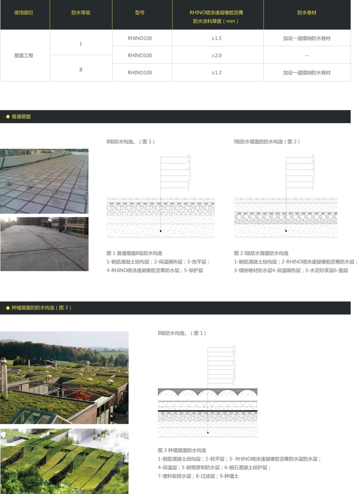 屋面工程RHINO噴涂速凝橡膠瀝青防水涂料做法